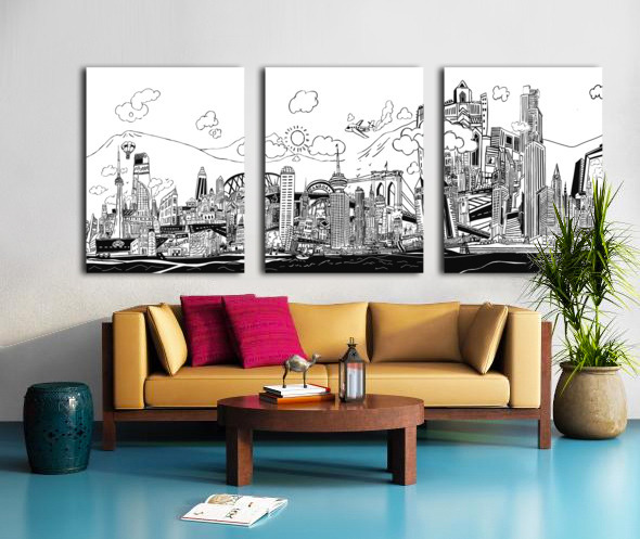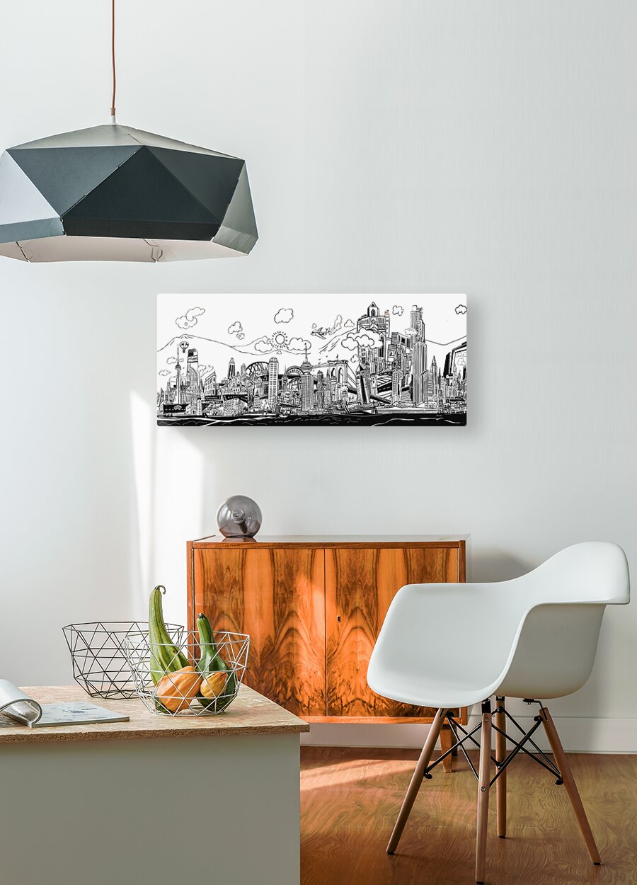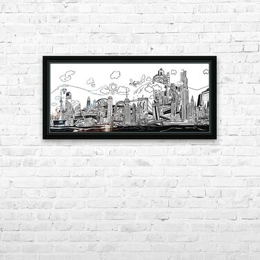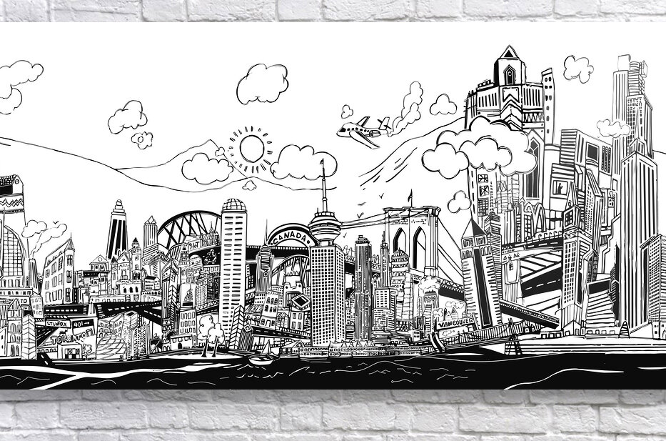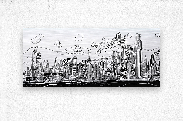 This intricate cityscape artwork by David Mantegh, presented by Mantegh Studio, captures an imaginative fusion of world-famous landmarks and architectural wonders in a dynamic, black-and-white line art composition. The meticulously drawn details showcase a bustling skyline filled with iconic buildings, bridges, and structures, creating a captivating visual narrative that celebrates urban life. The combination of artistic whimsy and architectural precision makes this piece a standout choice for adding a sophisticated touch of modernity and storytelling to any space. Reflecting Mantegh Studio’s commitment to creative excellence and unique designs, this artwork is perfect for lovers of architecture, travel, and detailed line art.