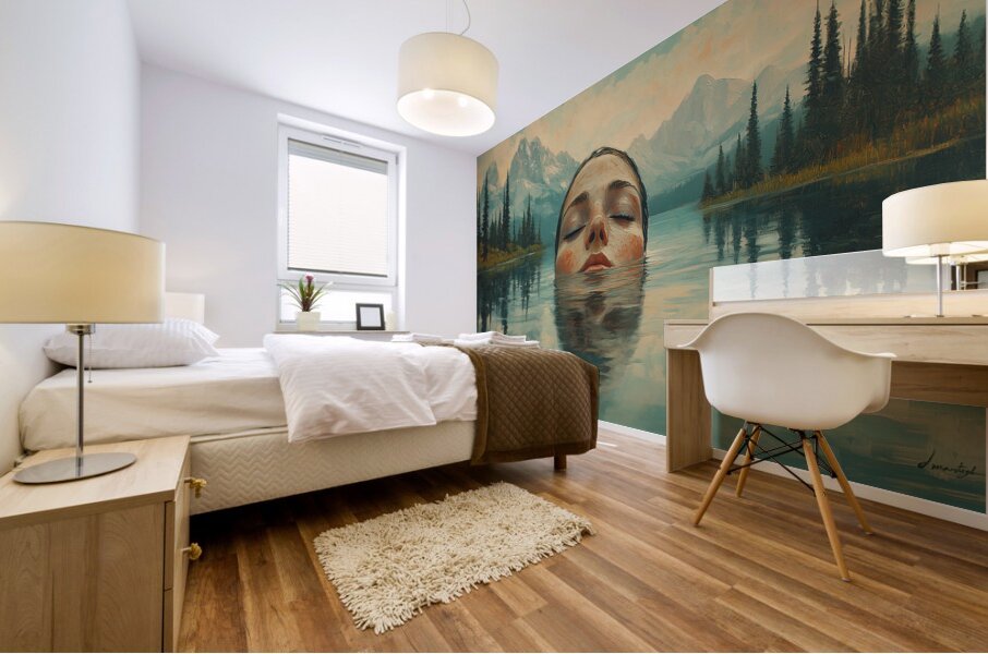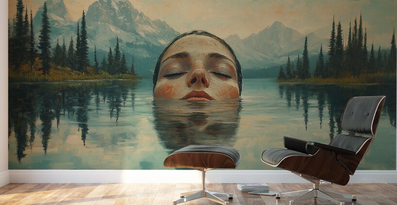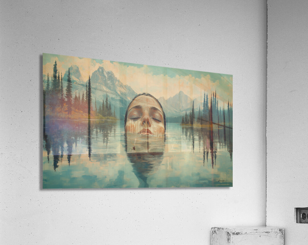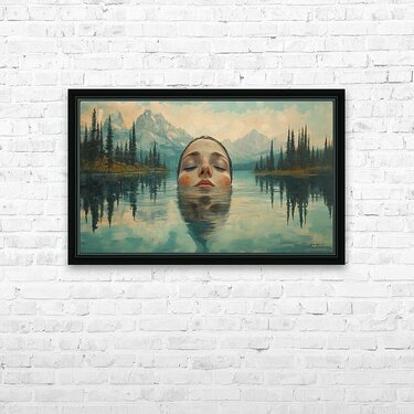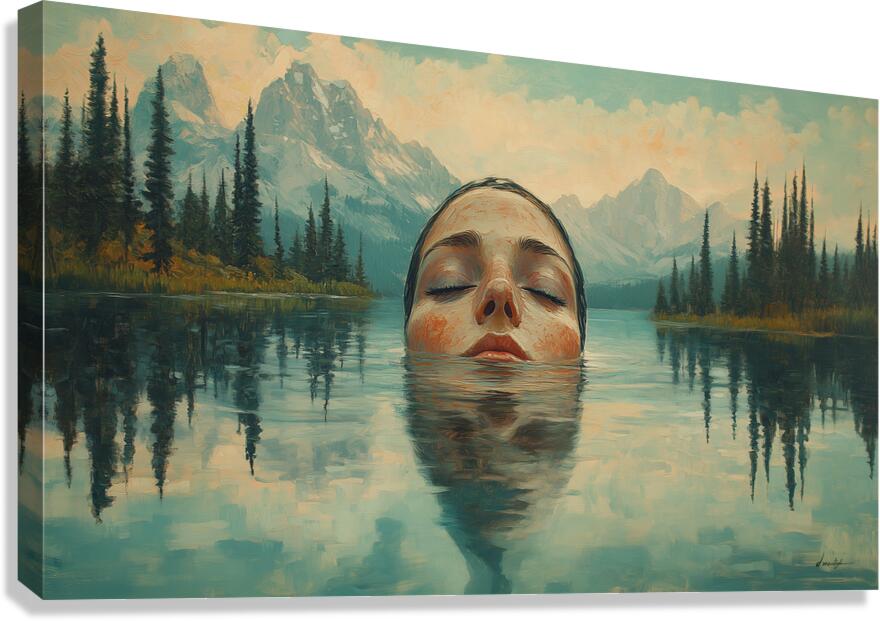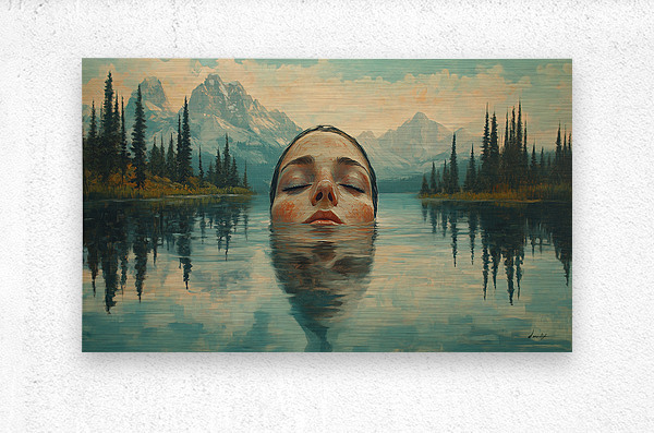 Tranquil painting by David Mantegh, presented by Mantegh Studio, captures the serene moment of a woman submerged in a calm lake, surrounded by majestic mountains and soft natural light. The reflection in the water adds a dreamlike quality, enhancing the connection between the figure and the tranquil landscape. The muted colors and delicate details evoke a sense of peace, introspection, and connection with nature. This captivating composition invites viewers to pause, reflect, and appreciate the harmony between human presence and the natural world. It is a stunning example of Mantegh Studio's ability to create immersive, high-quality art that transforms any space into a place of contemplation and beauty.