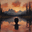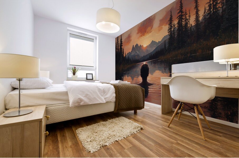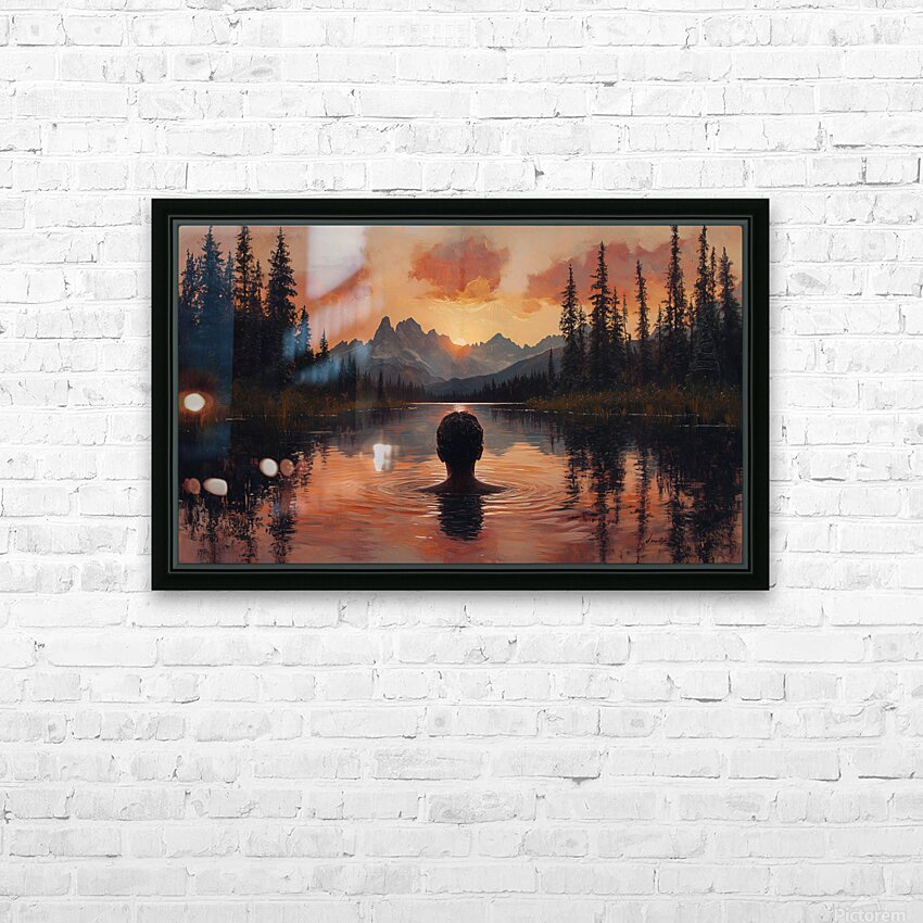 captivating sunset landscape by David Mantegh, crafted at Mantegh Studio, features a man standing in a serene lake, gazing at a breathtaking sunset ov...[+]
