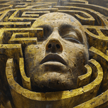 "Echoes of the Past 003" by David Mantegh, invites viewers into a complex labyrinth surrounding a monumental human face. This textured, golden composi...[+]