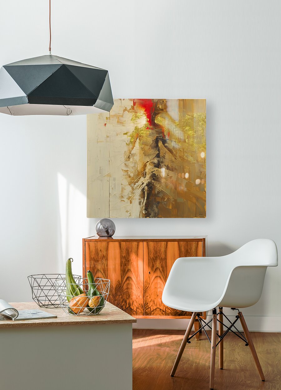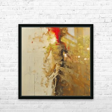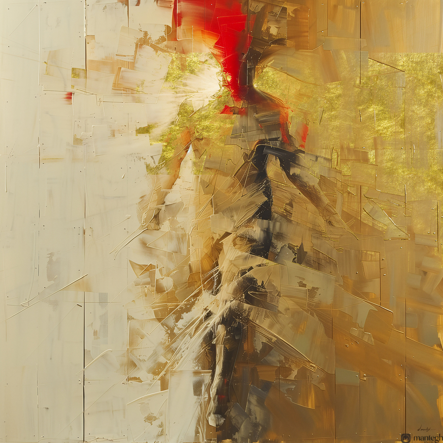 Titled "Long Gone," this Semi abstract artwork captures a fleeting human form dissolving into a cascade of light, texture, and movement. The use of bold strokes, gold hues, and contrasting deep reds creates a sense of energy and transition, evoking themes of impermanence, transformation, and fading memories. The fragmented shapes and delicate details invite viewers to interpret the piece through their own experiences, offering an immersive exploration of movement and passage. This powerful and visually stunning composition exemplifies Mantegh Studio’s mastery of blending emotional depth and artistic innovation, making it an impactful and thought-provoking addition to any space.