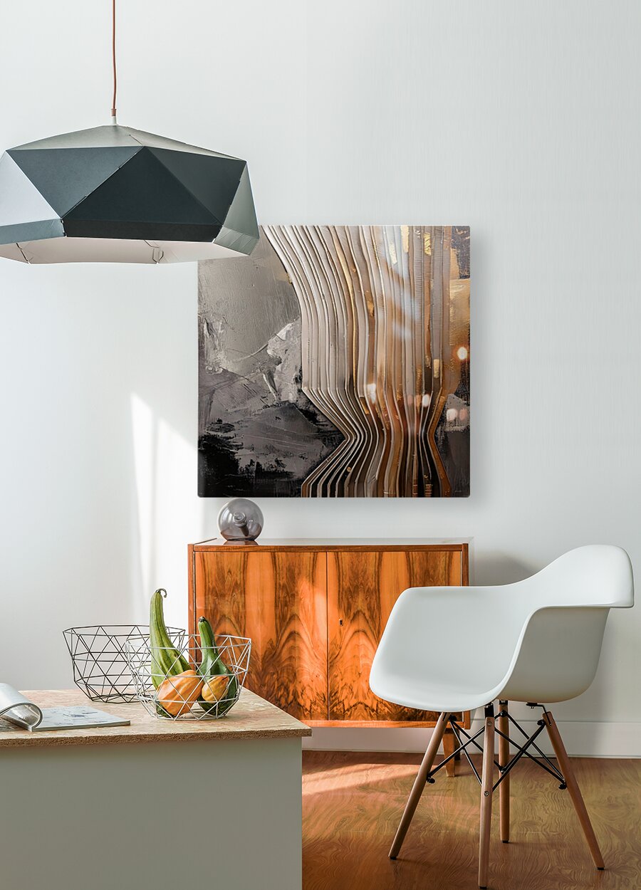 "DM- Golden wave001" captures the fluidity of nature with a structured elegance. This artwork combines intricate layers and a metallic palette, creating a dynamic composition that exudes both movement and tranquility. The golden accents amplify the depth and sophistication, making it a luxurious addition to any modern space.