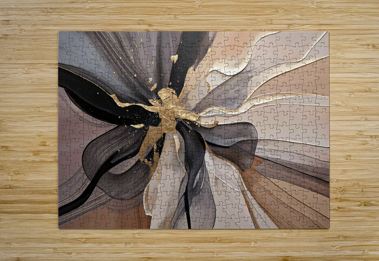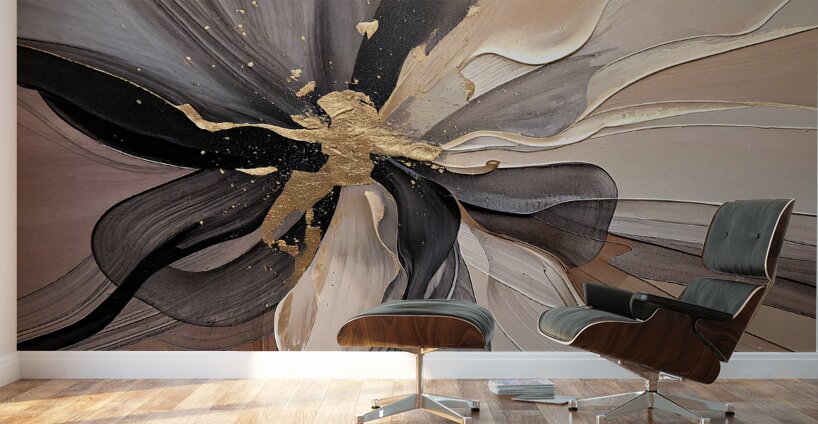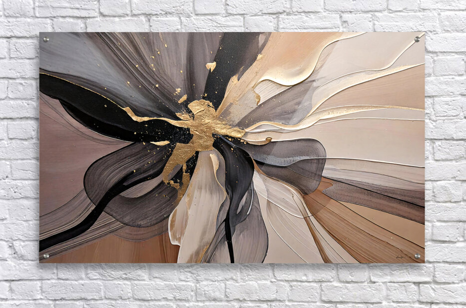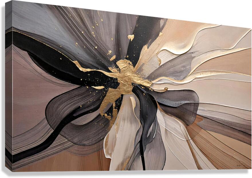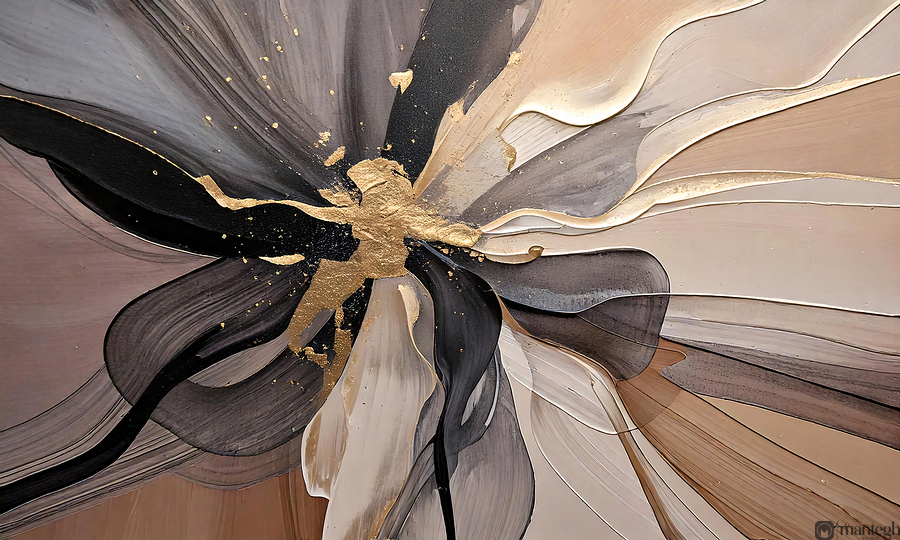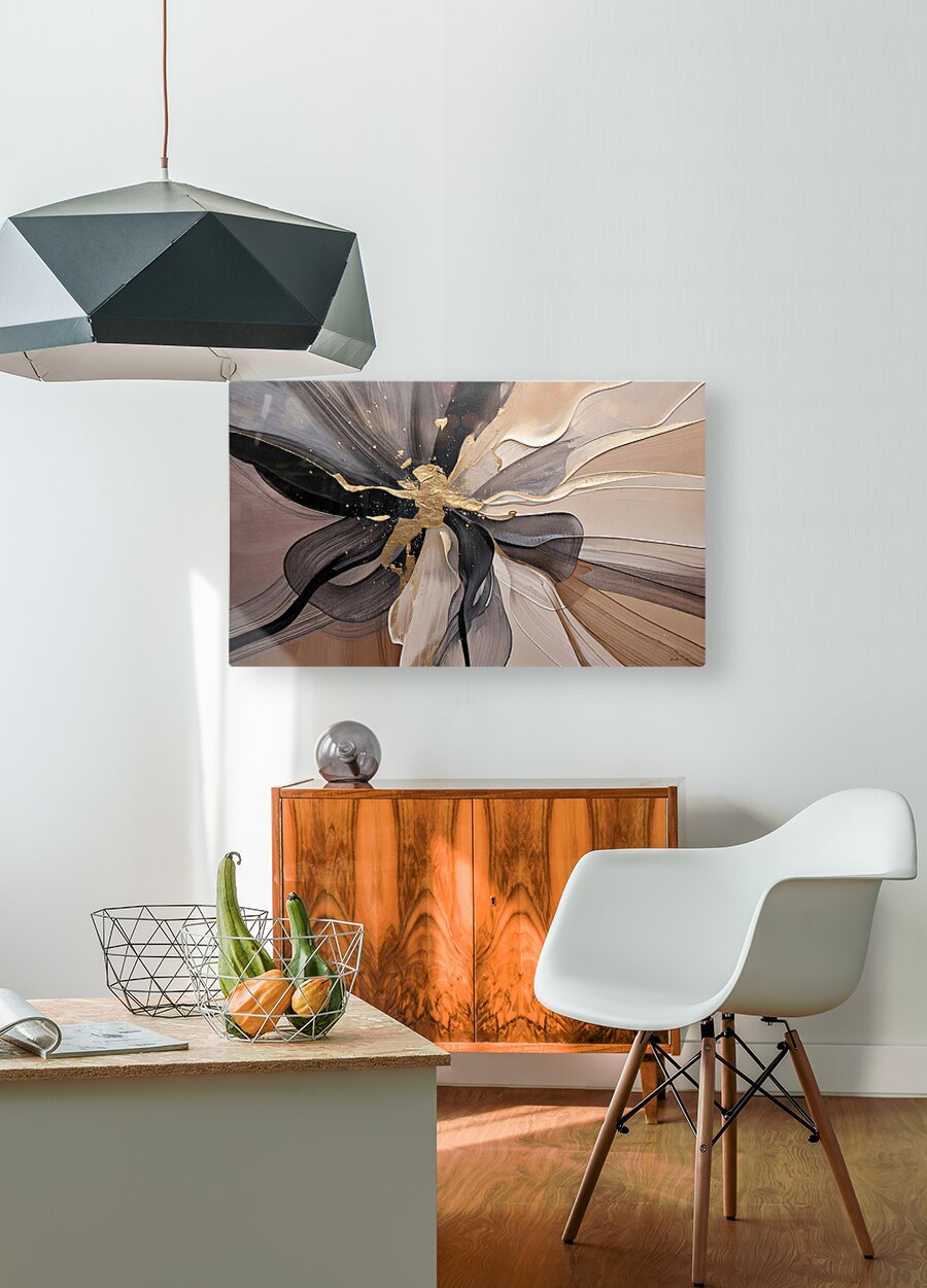 This abstract floral composition by David Mantegh embodies the elegance and organic beauty of nature with a modern twist. Featuring golden accents and flowing textures, it captures the delicate interplay of light, form, and motion, creating a timeless piece of artistic expression. Inspired by 2025 Trends colour, this work exudes sophistication, making it a perfect centerpiece for contemporary interiors. The layered metallic tones add depth and dimension, emphasizing the dynamic, almost tactile quality of the artwork.