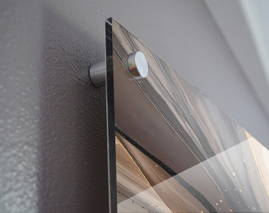 Printed to the edge - Ready to hang - provided with 4 premium polished aluminum stand off ( wall screws and mounting hardware provided )