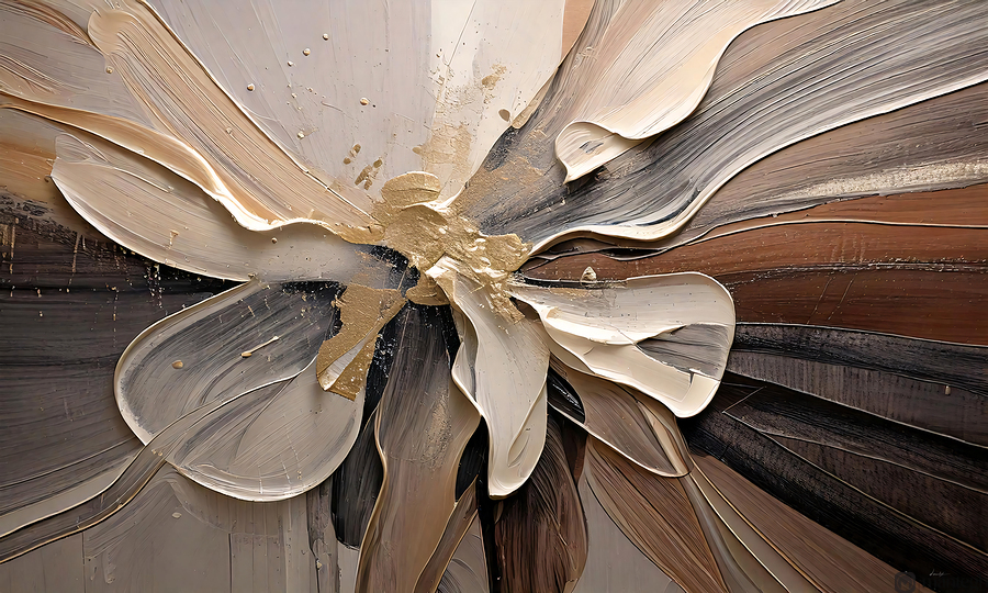 "Golden Floral 002" is a celebration of elegance and abstraction, blending bold brushstrokes with a luxurious gold palette. This artwork transforms a simple floral theme into a striking visual experience, showcasing David Mantegh's signature style that seamlessly combines texture and depth. Perfect for contemporary spaces, this piece is a testament to the beauty of modern art.
