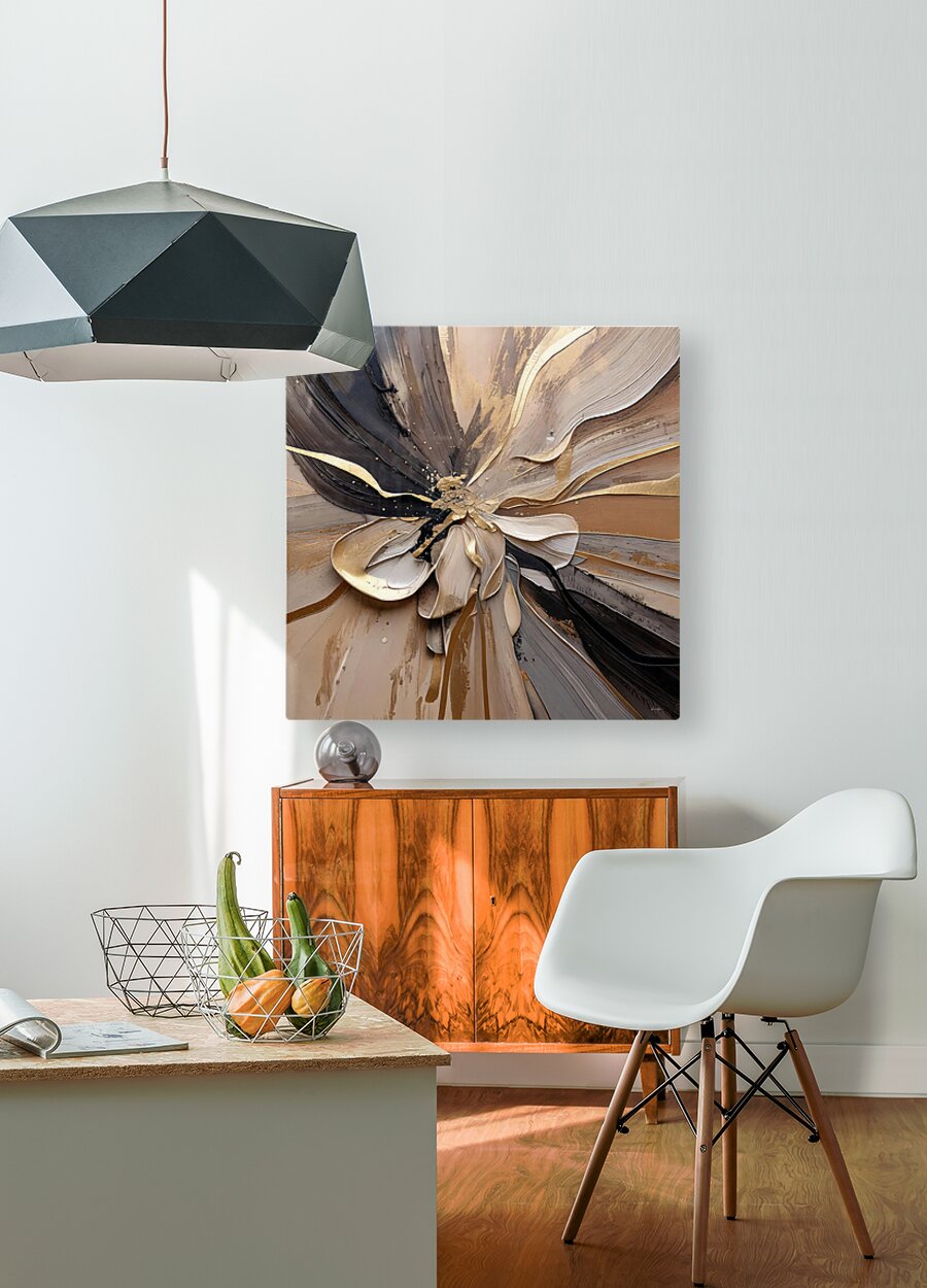 "Golden Floral 008" is a striking abstraction that redefines the floral motif through textured layers and radiant golden hues. David Mantegh masterful...[+]
