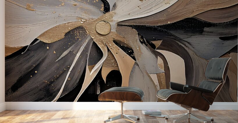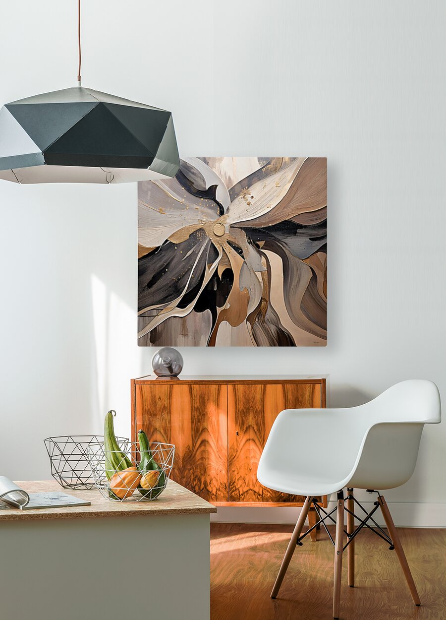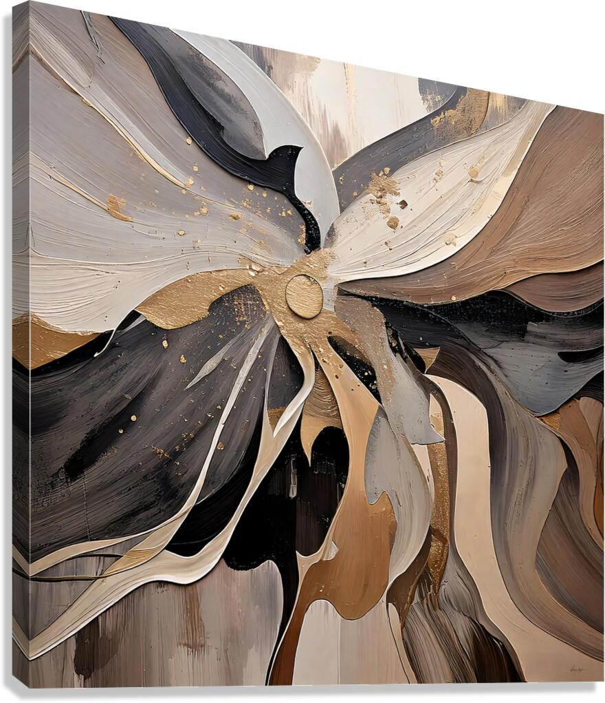 "Golden Floral 010" fuses the delicacy of floral forms with bold, textured abstraction. The golden palette adds a touch of luxury, making this piece by David Mantegh a centerpiece for modern, stylish interiors. Its dynamic composition creates a captivating visual narrative.