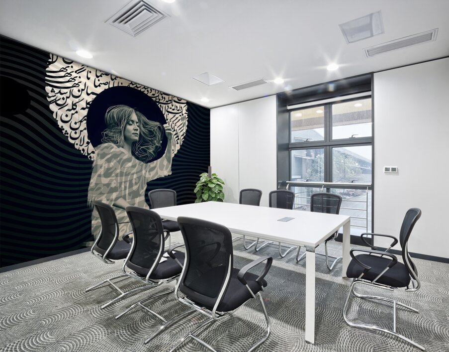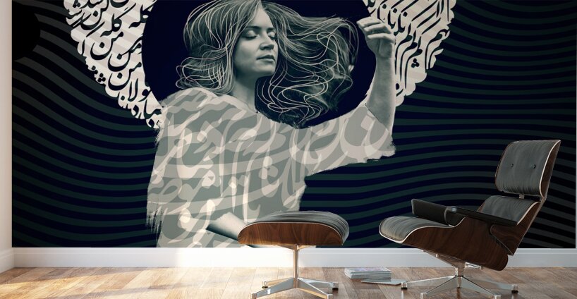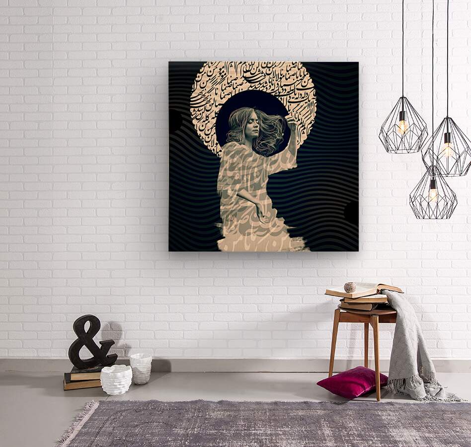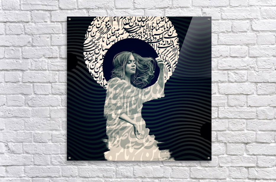 "Women-Time-Space 001" explores the harmony between culture, identity, and abstract form. Intricately combined Persian calligraphy with a serene female figure, representing a timeless dialogue between tradition and modernity. The swirling calligraphy forms a celestial halo, creating a meditative aura, while the figure’s flowing hair symbolizes freedom, resilience, and continuity. The composition’s undulating waves echo the interconnected rhythm of time and space. This masterpiece speaks to cultural heritage and poetic beauty, making it a profound and contemplative statement for contemporary art enthusiasts.