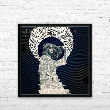 "Women-Time-Space 001" explores the harmony between culture, identity, and abstract form. Intricately combined Persian calligraphy with a serene femal...[+]