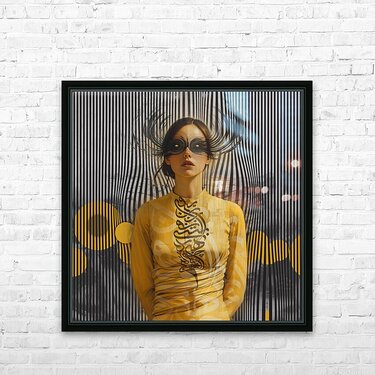 "Women-Time-Space 004" is a striking portrayal of cultural fusion and symbolic expression, masterfully blending Arabic calligraphy with surreal visual...[+]