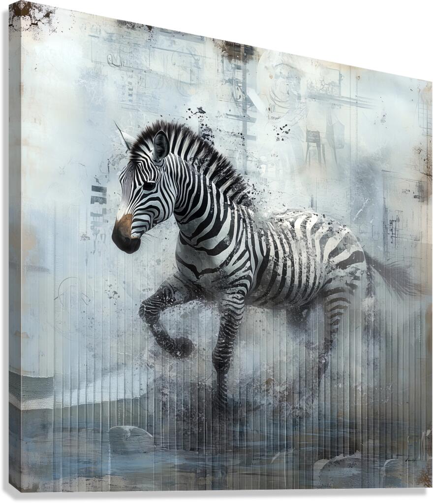 This series of zebra-inspired artworks by David Mantegh bridges the boundary between nature and artistic abstraction. Each piece explores the elegance and dynamism of zebras through textured painting and monochrome palettes, enriched with gold and natural tones. The first piece captures a zebra in a dramatic splash of textured waves, symbolizing energy and freedom. The second depicts a zebra in motion, embodying resilience and vitality against a muted abstract background. The third focuses on a detailed and expressive portrait, merging bold black-and-white stripes with textured layers. Together, these artworks offer a sophisticated and symbolic interpretation of wildlife, perfect for contemporary decor and art enthusiasts.
