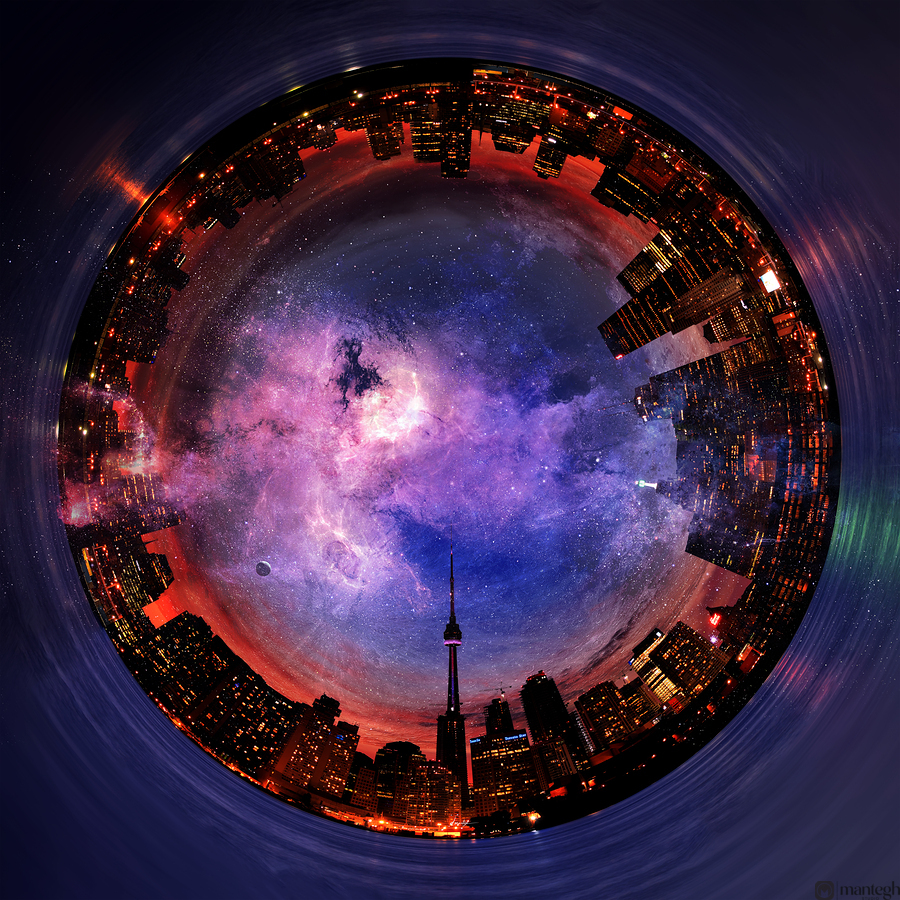 "Toroniverse" is a striking photo-bashing series that merges Toronto's iconic skyline with cosmic imagery, blending the urban landscape with celes...[+]