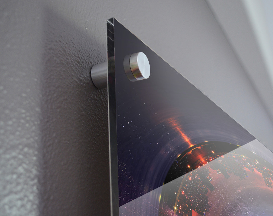 Printed to the edge - Ready to hang - provided with 4 premium polished aluminum stand off ( wall screws and mounting hardware provided )