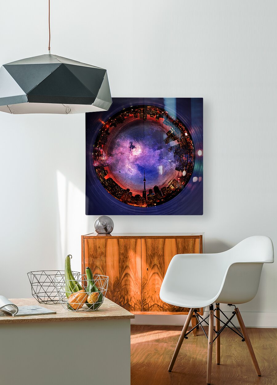"Toroniverse" is a striking photo-bashing series that merges Toronto's iconic skyline with cosmic imagery, blending the urban landscape with celestial elements. The artworks explore the connection between the city and the infinite vastness of the universe. With surreal compositions featuring the CN Tower surrounded by galactic textures, these pieces evoke a sense of wonder and interconnectedness. The series juxtaposes the hustle of urban life with the tranquility of the cosmos, symbolizing how the universe observes and shapes our existence. Perfect for modern spaces, these artworks offer a unique perspective on blending architecture and celestial artistry.