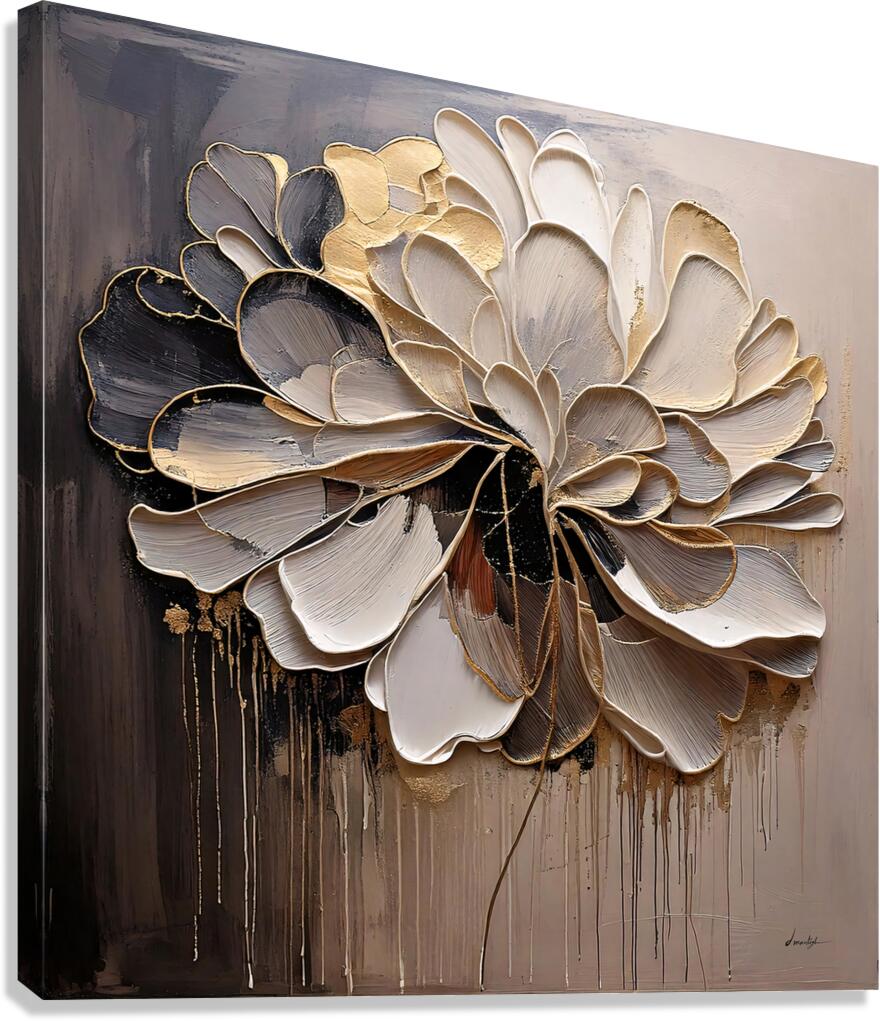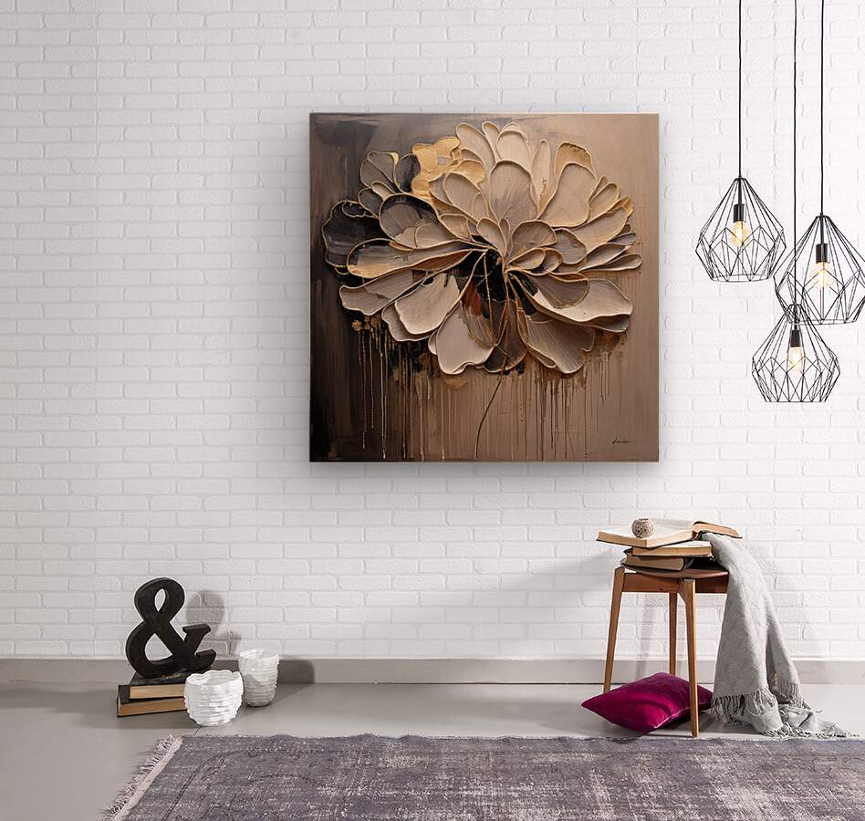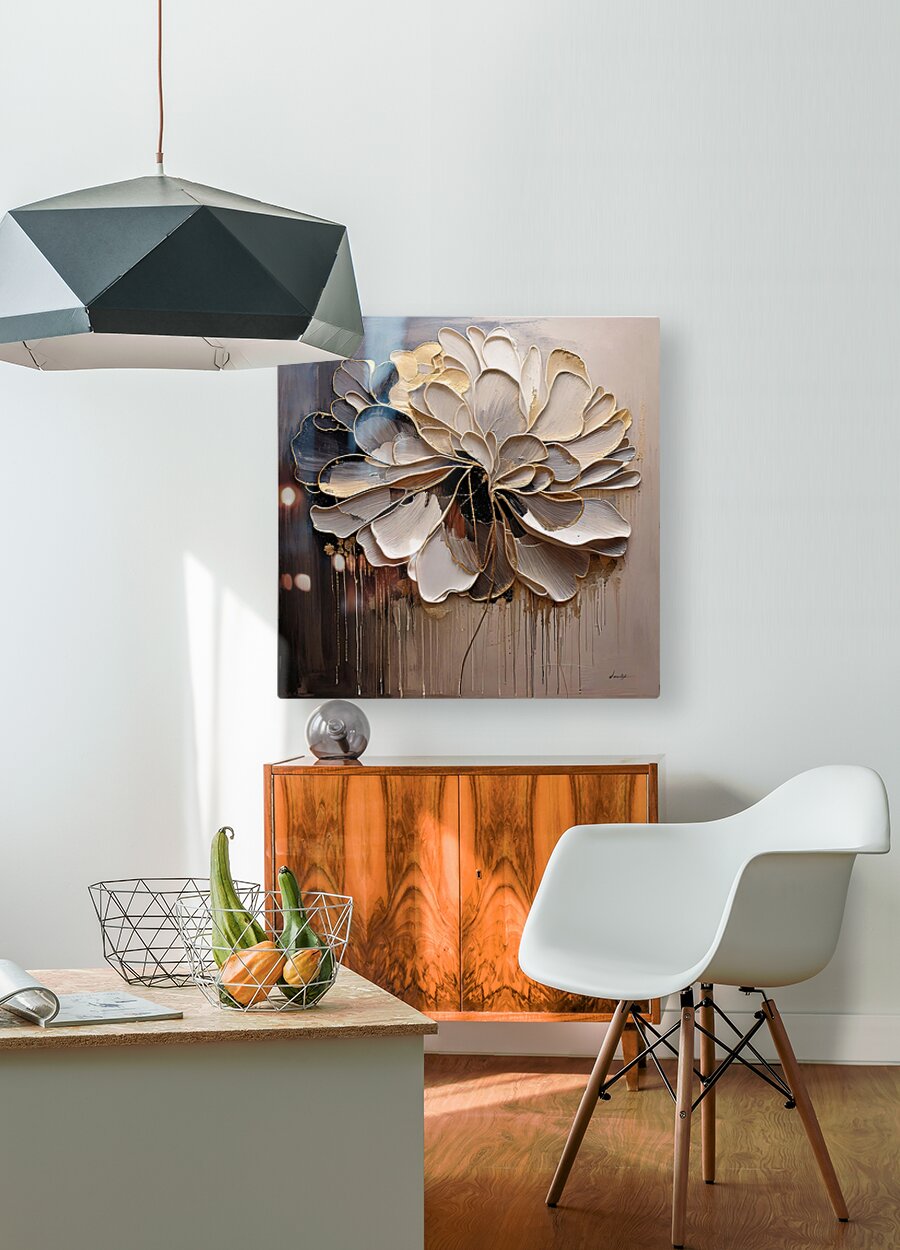 This artwork by David Mantegh blends expressive textures and symbolic elegance, featuring a golden floral motif that radiates sophistication and depth. The harmonious mix of gold accents and earthy tones highlights the intricate layers and rich textures, creating a statement piece perfect for modern interiors.
