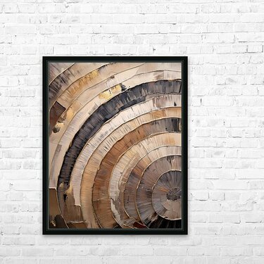 This decorative abstract artwork showcases a spiral design with layered textures and neutral tones. Its elegant composition adds a touch of sophistica...[+]