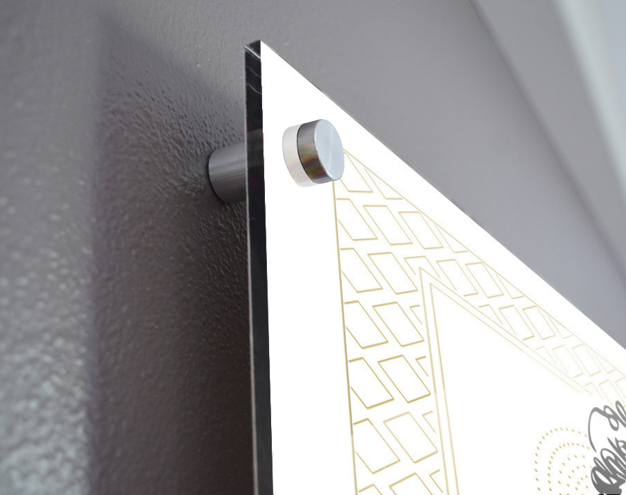 Printed to the edge - Ready to hang - provided with 4 premium polished aluminum stand off ( wall screws and mounting hardware provided )