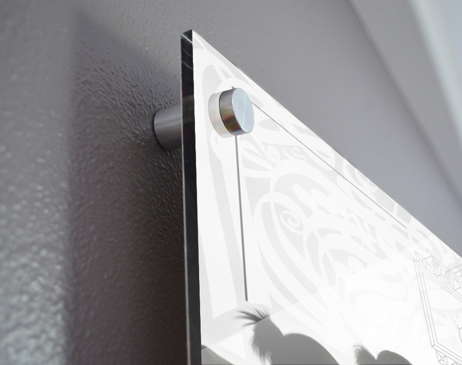 Printed to the edge - Ready to hang - provided with 4 premium polished aluminum stand off ( wall screws and mounting hardware provided )