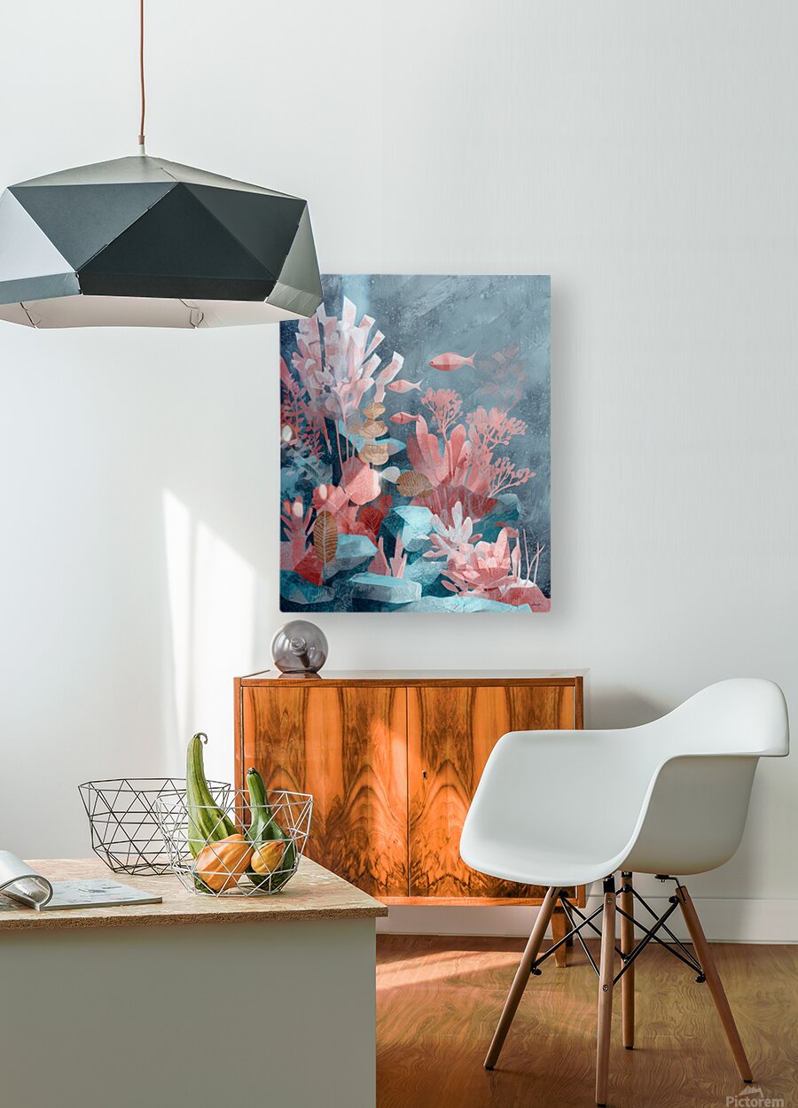 In this ethereal piece, sea foliage and coral formations interlace with crystal-like geometry, evoking a secret garden under the waves. The painterly ...[+]