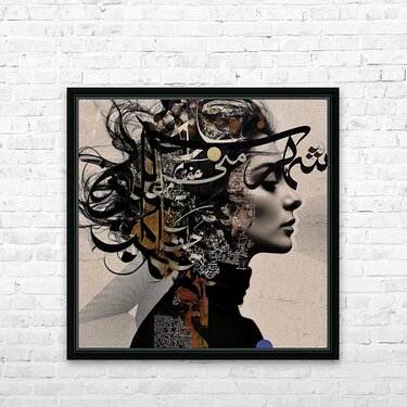 "You are my home" is a mesmerizing fusion of motion and culture, blending the fluidity of Persian calligraphy with the grace of a women's beauty. This artwork explores themes of elegance, cultural identity, and the universal language of art through Calligraphy. The piece invites viewers into a world of fluidity and grace, making it a powerful addition to contemporary art collections and a striking statement in any modern space.