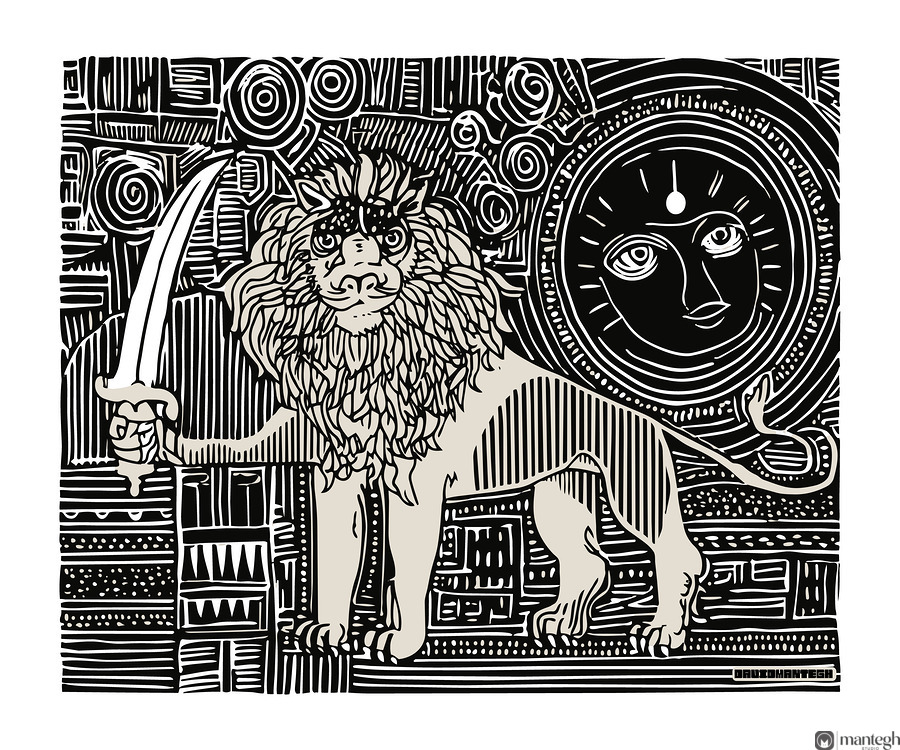 A bold reinterpretation of an ancient emblem, DM SHIRO KHORSHID (The Lion and the Sun) revives the legendary Persian icon through contemporary line art. Holding a scimitar and standing beneath the radiant, symbolic sun, the lion becomes more than a beast — it’s a guardian of light, history, and resilience. Every line in this piece is hand-drawn in a modern lino-cut style, creating an energetic rhythm across the canvas while paying homage to centuries of Iranian heritage. The illustration mixes mythology, geometry, and visual storytelling — resulting in a piece that resonates with both cultural pride and modern aesthetic sensibilities. This artwork stands at the crossroads of tradition and modernity and belongs to the Persian Line Series, which blends symbolism and pattern with bold graphical impact.