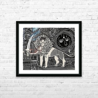 lion with sword