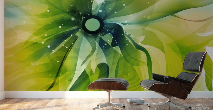 This artwork, titled "Green Modern Flower," presents a sophisticated and contemporary take on floral art, created by David Mantegh, The piece features...[+]