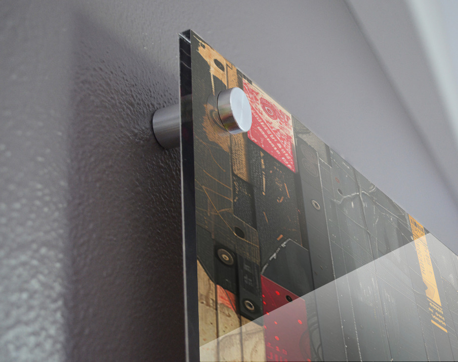 Impression sur acrylique avec entretoises ( cylindres métalliques )