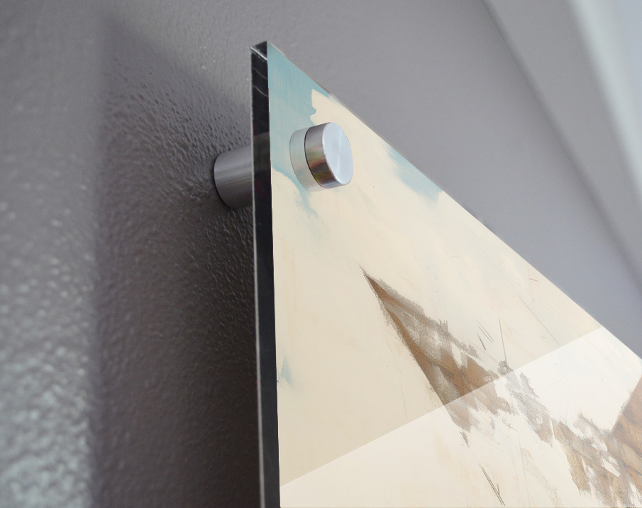 Impression sur acrylique avec entretoises ( cylindres métalliques )